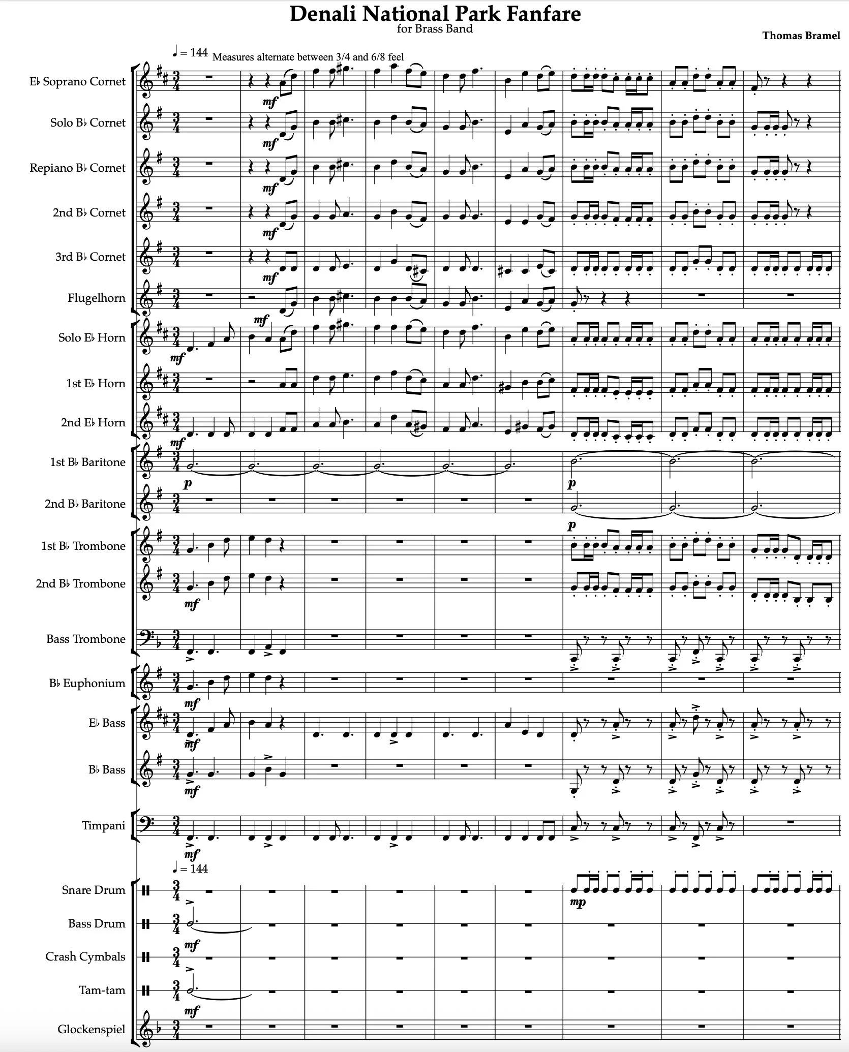 Denali National Park Fanfare for Brass Band (Score excerpt)